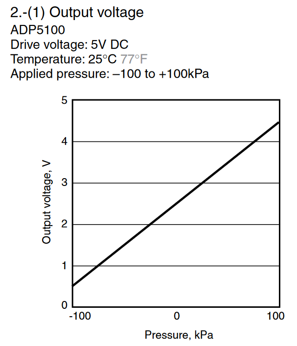 ADP51A11 - A simple 5V logic level analog output sensor. Simply requires a 5v power connection and offers a linear voltage response ranging between approximatly 0.5v - 4.5v.